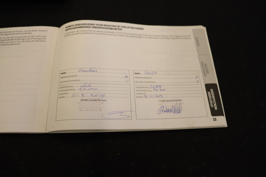 Origineel Nederland geleverde Giulia & Volledig ALFA ROMEO Dealer onderhouden met slechts 108.746 km!Deze Giulia is nieuw geleverd door Driessen Alfa Romeo in Eindhoven (nu Nefkens Alfa Romeo) en heeft al het onderhoud daar ook gehad. De laatste eigenaar heeft deze in bezit gehad van 2019 tot 2026.