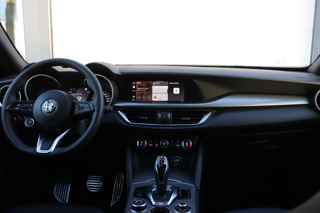 Klaargemaakt voor verkoop met een onderhoudsbeurt volgens schema bij de Alfa Specialist en een APK geldig t/m 3 september 2026 zodat u direct de weg op kunt om te gaan genieten! Want een glimlach op uw gezicht is niet uitgesloten. Nog meer dan menig andere SUV is de Stelvio een pret-SUV, een van de weinige waarmee je voor je plezier een bochtig weggetje gaat opzoeken. Dit onderstreept het dynamische karakter van de Alfa Romeo, die hiermee aanvoelt als een Giulia met een iets hoger zwaartepunt.